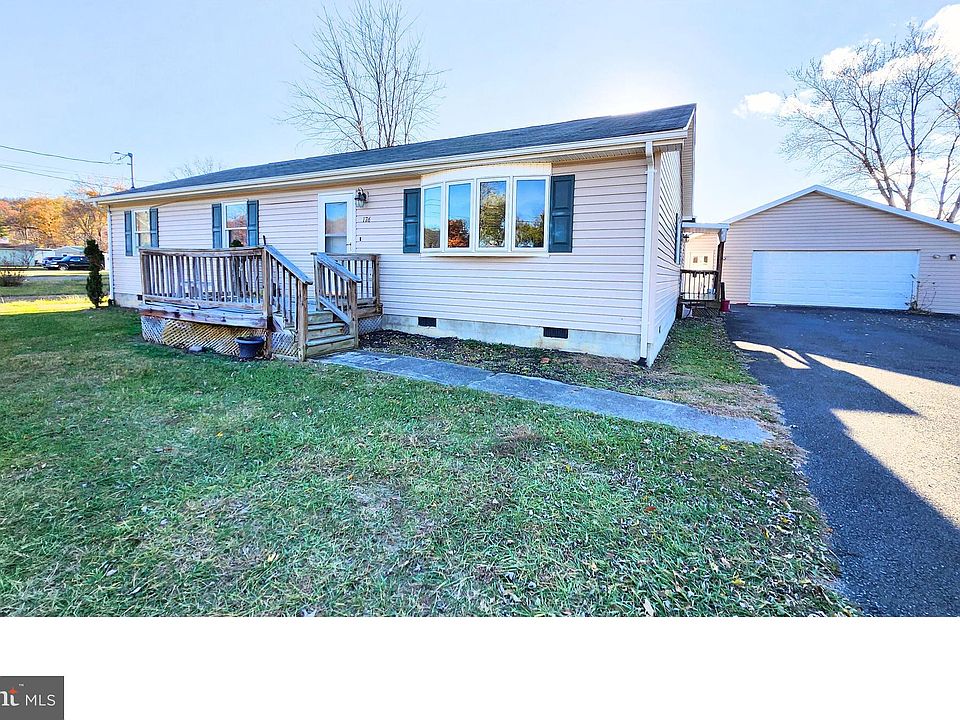 Step inside this well maintained 3-bedroom, 2.5-bath single-level ranch house with a classic layout that feels like home from the start. The spacious living room welcomes you with a large bay window that floods the space with warm, natural light. Whip up meals in the large eat in kitchen that’s perfect for a small dinner or a big gathering. The incredible laundry room is complete with two huge closet/pantry spaces, a convenient half bath, and bonus storage! Down the hall is a full bathroom, 2 generous size secondary bedrooms and a primary bedroom with a full bath and large walk in closet. All situated on just over a half acre nice level lot - expansive yard space for play, gardening, or relaxing—plus not one but two oversized detached garages with front-entry doors, ready to fuel your passions. Whether you're a car enthusiast, mechanic, crafter, or hobbyist, these massive garage spaces offer endless possibilities! Blacktop driveway provides additional easy maintenance parking! Craving small-town charm in a peaceful rural setting? This is it! Just minutes from shopping, churches, schools, and endless outdoor adventures. And the best part? The seller is already replacing and repairing the deck and porch!