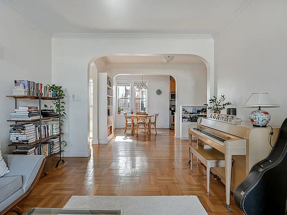 This beautiful and spacious 2-bedroom, 2-full-bathroom co-op offers over 1,200 square feet of comfortable living in the heart of quaint Windsor Terrace. This unit is perched on the fourth floor of a six story elevator building and features the ideal layout: from the well appointed foyer, to a grand open living and dining space. The oversized living room is perfect for entertaining, and bathed in light from the wall of windows. The sun-filled dining area is a perfect place to start and end your day with family and friends. The kitchen is a home cook's dream, designed for form and function. Featuring a full suite of stainless steel appliances, including a dishwasher, extra counter space and cabinetry throughout, the kitchen offers maximum storage with a minimalist aesthetic. Beyond, two large bedrooms and two baths - one a primary en-suite - offer tranquil repose and plenty of space. Throughout the home, high ceilings and multiple exposures provide an expansive flow of light and air, deep closets offer ample storage, and thoughtful touches bring a playful charm to the everyday. 176 Seeley Street is a classic pre-war co-op; the elevator building is immaculately maintained with amenities including a live-in super, bike storage, a common laundry room, and a landscaped courtyard. Located just a half block from Prospect Park and nearby restaurants and shops such as The Elk Cafe, Le Paddock, Della, Piccoli, Krupa Grocery, Yoga Sole and more. Blocks away from the F/G station, the serenity of suburban living is just a train ride away from Manhattan. Move-In Costs: - First months rent - One month security deposit - $750 refundable move-in deposit - $150 application fee - $20 credit check per applicant