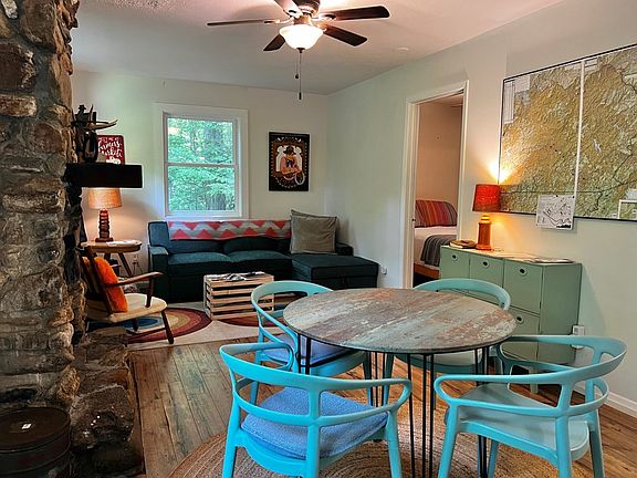 This charming 1 bedroom, 1 bath cottage is just off the North Carolina Scenic Highway 64. It's less than 10 minutes from downtown Franklin, 10 minutes from the Nantahala State Park Entrance, convenient to shopping, hiking, waterfalls, gem mining and so much more! It comes fully furnished and is already set up to be a vacation rental or consider it move-in ready to live in full time. So much love and attention has been put into this home, you have to see it to appreciate it. This home is also much more economical than many of the tiny homes and mobile homes selling in our area and on just over 1/2 acre of land with a stream makes this a deal that won't last long.