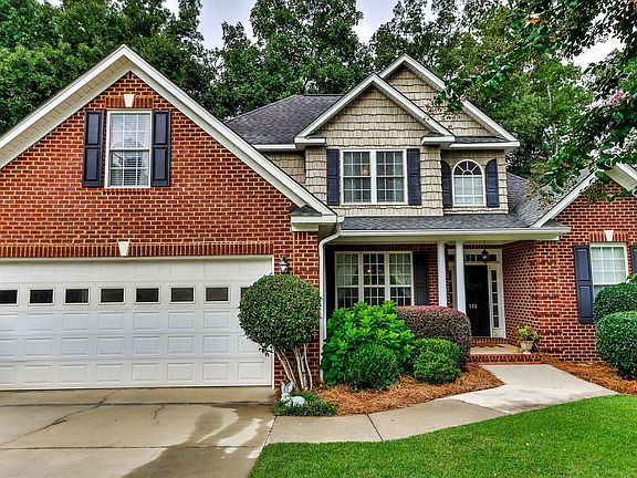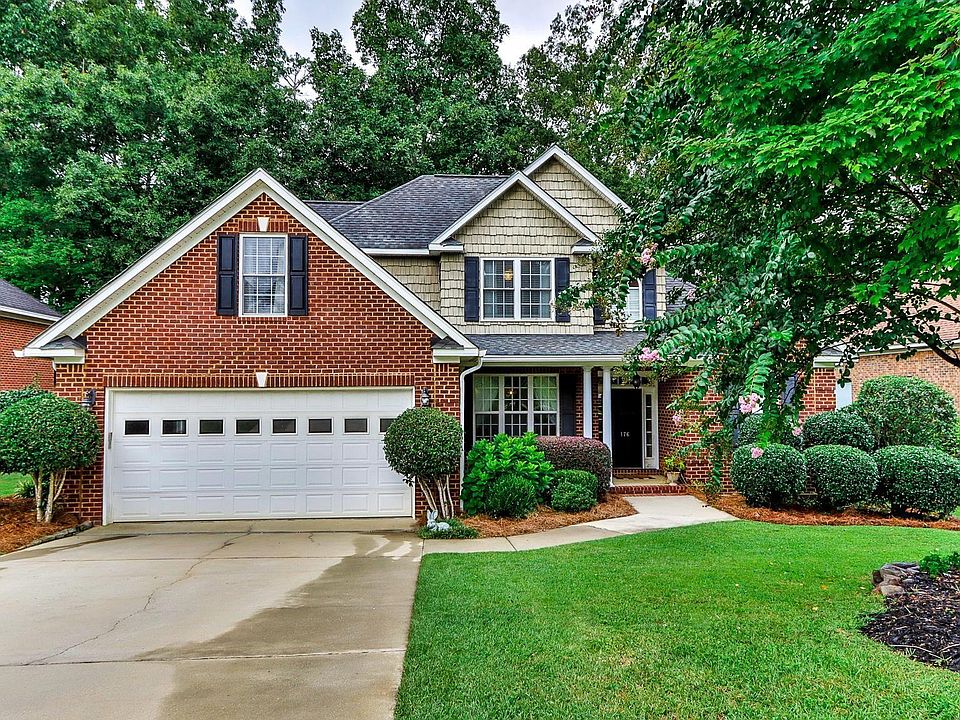 This charming brick home is located in the desirable Shoal Creek neighborhood and offers a pleasing floor plan that allows for easy living. Entering the home into the welcoming foyer you will see the refinished hardwood floors and updated stair banister. The formal dining room with beautiful molding leads to the stunning kitchen with plentiful cabinets and counter space has newly painted cabinets, gorgeous natural stone quartzite countertops, stainless steel appliances, and a big walk-in pantry. The master bedroom is located on the main floor with a huge walk-in closet and ensuite with double vanity, separate shower, and separate bathtub. Upstairs are 3 secondary bedrooms with access to the lovely shared bath with double vanity. The first upstairs bedroom features a built-in desk, a walk-in closet, and easy walk-in attic access. The 3rd bedroom is also the FROG with abundant storage and a walk-in closet. Enjoy your partially wooded, fenced-in backyard. Shoal Creek is zoned for Meadow Glen Elementary School, Meadow Glen Middle School, and 2019's Palmetto Finest High School, River Bluff. Neighborhood amenities include a swimming pool, sidewalks, and a nature trail along 12 Mile Creek and affordable HOA fees.