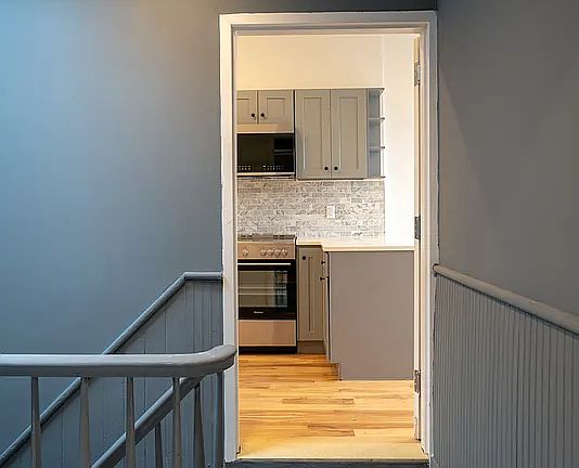 Tucked away on a peaceful, tree-lined street just moments from the Graham Avenue L, this beautifully gut-renovated 1-bedroom, 1-bathroom home offers the perfect blend of tranquility and urban energy. With soaring vaulted ceilings and brilliant natural light all day, the apartment feels as expansive as it is refined. Highlights Include: Brand New Chef's Kitchen Outfitted with full-size stainless steel appliances including a dishwasher, microwave, and gas stove, plus sleek cabinetry and stone countertops. King-Sized Bedroom Two oversized windows bathe the space in sunlight, complemented by generous closet storage. Spa-Inspired Bathroom Modern tiling, a custom vanity, and a glass-enclosed standing shower create a polished, hotel-like experience. Central Air & Heat Comfort year-round with modern climate control. Recessed Lighting & Hardwood Floors Thoughtfully designed finishes throughout, all under dramatic ceiling heights that elevate the home. In-unit Washer & Dryer This is Williamsburg at its best: a quiet residential pocket steps from vibrant cafes, acclaimed restaurants, independent boutiques, and the L train.