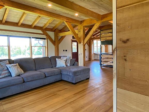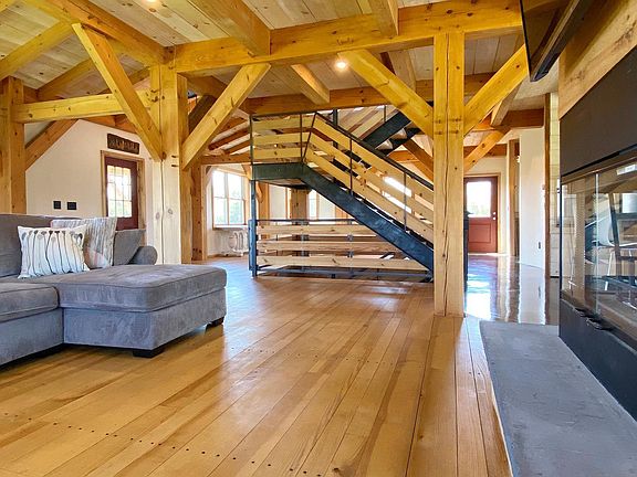 This handsome timber frame home sits on six private acres just a mile and half from the Delaware River & Canal State park in coveted Tinicum Township. Designed with both beauty and efficiency in mind, it features hardwood floors of quarter-sawn white ash, exposed wood beams, Pella double-paned windows and radiant heat throughout. At the heart of the first floor is a beautiful three-sided fireplace that perfectly defines the space between the living room and dining area, where French sliding glass doors open to the back yard and patio. The spacious kitchen features polished concrete countertops, plenty of custom cabinetry, and an oversized island with built-in induction cook top and convection oven. Just off the kitchen is a large pantry area for more storage as well as a full bath. The open staircase (with steel cable and 4-inch red oak treads) leads to the second floor, where you~ll find two guest bedrooms, a full guest bath, laundry room, and a large master suite with soaring ceilings and two walk-in closets. The master bath features a double vanity, walk-in shower and a free-standing tub. High ceilings give the house an open, airy feel, and the monitor cupola at the top of the stairs brings in plenty of natural light while helping to cool the home in the summer. The unfinished basement has acid-etched & waxed concrete floors with radiant heat and a giant wood stove capable of heating the entire home. The 35 x 35 ft pole barn can be used to park four or more cars, or it could be converted to a guest house/studio (it's plumbed for radiant heat and has its own electric panel, water, and the septic system is sized for 4 bedrooms). Other house features include: Geothermal heating; instant hot water; high solar heat-gain coefficient south facing windows; eco-friendly insulation with zero thermal bridging; central AC; 10 x 16 shed for additional storage. Please call for a live or virtual showing. 2020-06-19