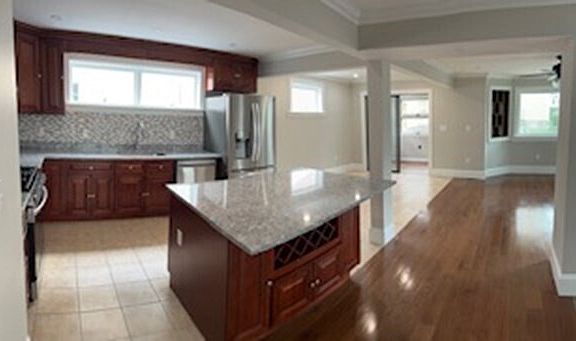 BEAUTIFUL TWO FAMILYCOMPLETELY REMODELED two-car garage, located in a highly desired neighborhood. 1st floor gorgeous 3 bedrooms 2 full baths the unit contains spacious open floor plan ideal for entertaining including a gourmet kitchen with island, granite counter tops, top-of-the-line stainless steel appliances, Hardwood flooring, washer and dryer in the unit, new central heating with A/C. 2nd floor features are two bedrooms, 1 full bath, new kitchen with granite countertops, hardwood flooring, a washer and dryer in-unit. new central heating with A/C. new separate utilities service in both units. Centrally located close to all major routes (195, 6,79,88 and 24). Don't miss it.