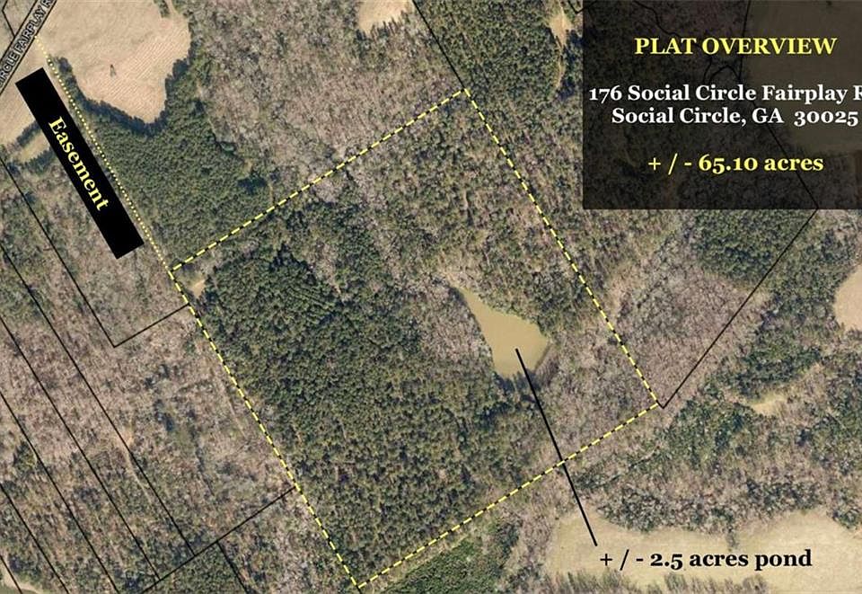 65 + private acres located in the southeastern portion of Walton County. This property has a 30 ft recorded easement from Social Circle Fairplay Rd that leads to the front right corner of the property. The property is mostly level with slight topography changes throughout. It is mostly wooded and has an estimated 60-70 planted pines per acre. The pines have recently been thinned down and provides visibility and accessibility to walk or ride throughout. There is a 2.5 acre pond located in the rear corner of the land as well. This is a Hunter's paradise with deer, turkey, and wild boar that can be found throughout the property. Walton County zoning will allow for one single family residence with a guest house to be built. No subdividing allowed in order to build multiple homes, however the property can be subdivided into a max of two tracts with potential for two lots. This property is shown by appointment only. No Trespassing!