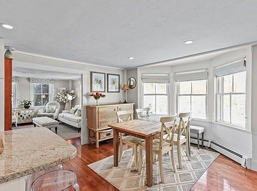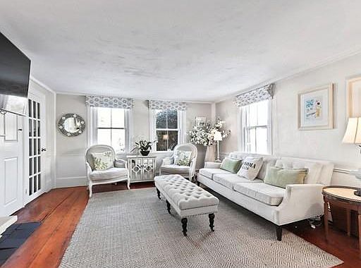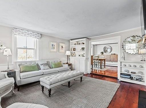 Beautifully updated, ground floor 2 bedroom unit with a private deck in prime Downtown Hingham location. This home has been tastefully remodeled and offers an open living, dining and kitchen room with wide pine floors, built-in bookcase, fireplace, and bay window. The two bedrooms and bathroom are located at the opposite side of the home creating privacy from the living space. Close to the train, Shipyard, shopping, restaurants, Harbor, and all that Hingham Square has to offer.