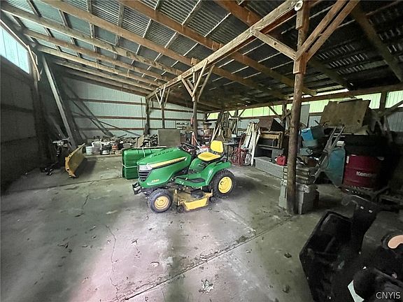 What a wonderful tranquil location in the Dryden school district. This home includes a fully stocked trout creek (Virgil Creek) behind the house, barn/garage that could hold 4 plus cars, well-manicured lawn and more. The single wide trailer is mature but well maintained. There is also an addition off the back which doubles the space. This home could be lived in currently while you update or swapped out or build your own. Everything works! This will have to be a cash sale only due to the mature age of the manufactured home. All of this and almost 10 acres! The acreage is on both sides of the road. The 9.55 acres is made up on two sides of the rd. 3.88 acres is on the opposite side of the road with 700 feet of road frontage and could have potential of being a building lot or just more recreational space to use.