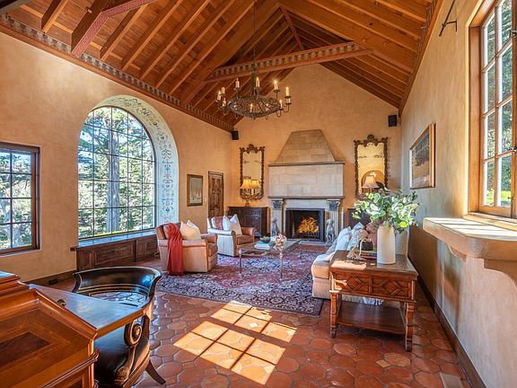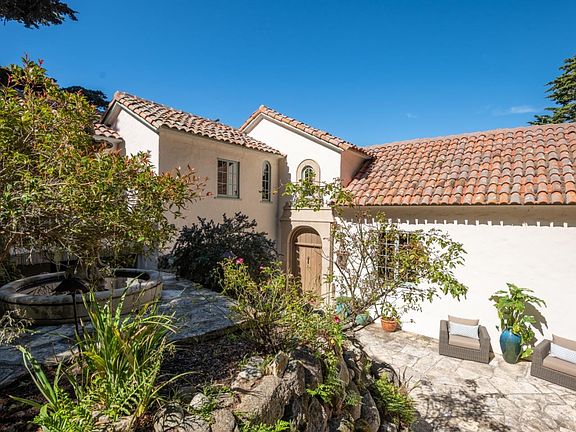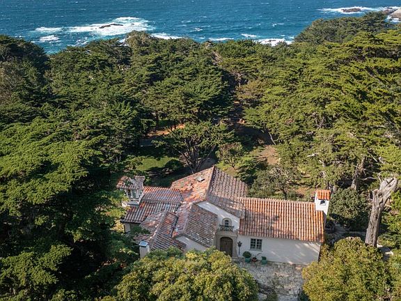 Situated on 3 acres of Monterey Cypress-studded land, sits this magnificent Spanish Revival, Carmel Highlands estate. The property boasts impressive open-ocean views of Point Lobos, coastal whitewater and the sunlight dappled natural beauty of Carmel. The 4,730 sq. ft. house was completely renovated in the early 2000s preserving the architectural details of a Spanish Revival home, while introducing the modern luxuries of today. Features include radiant floors, chefs kitchen with a La Cornue range, French limestone, and granite countertops, a Turkish spa highlighting a soaking jacuzzi tub, steam and waterfall shower, and large dry sauna. Upstairs, a private, primary haven awaits, including a cozy living area, executive office, and palatial bathroom, all with sweeping views of the Pacific. The lower lot is home to a large fire pit area, basketball court, and grass lawns to the gated Spindrift entrance, perfect to entertaining, hosting events, or just your private paradise by the sea.