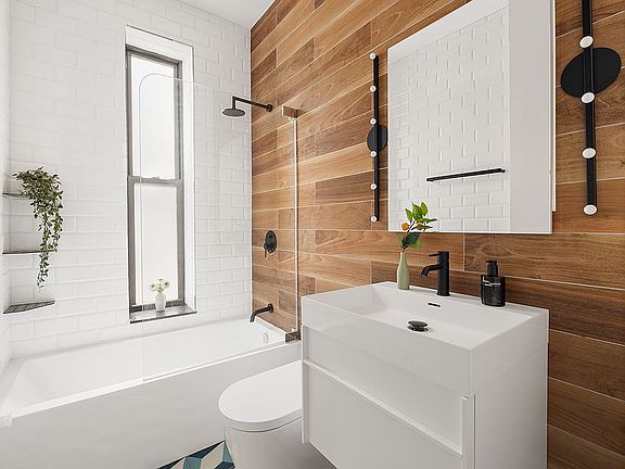 Welcome to 176 Sterling Place, 6L, a stunning, newly-renovated 2-bedroom/1-bath with low monthlies on a great block in the North Slope. Enjoy treetop views and tons of sunshine in this super bright and gracious home. Featuring beautiful, brand-new white oak floors throughout, and exposed brick this very special home is charming and well-designed. The main living space has a south-facing open kitchen and great dimensions with windows on two sides. The sparkling new kitchen with a large breakfast bar offers lot of storage and work space and Fischer Pakel and Bosch appliances. The East-facing primary bedroom has two tall windows and high ceilings, gets lovely light throughout the day, and is large enough for a king-sized bed. The second bedroom can comfortably accommodate a twin, daybed or is a large bright home office. The windowed bathroom has a Miele stackable washer/dryer, linen storage, Porcelanosa tub, vanity and fixtures and custom cement tiles. All rooms have been outfitted with new split-system air-conditioning and heat pump systems. This top-floor home is an easy 3 flights up and just one more flight to the lovely common roof deck. Enjoy the spectacular Manhattan skyline views while entertaining friends or just lounging in the open air. This well-run Co-op just completed several building upgrades including installing solar panels which produce enough energy to operate the water heaters and the common area lights, keeping monthlies even lower. The new lobby with vintage design tiles offers video intercom access, stroller parking, and a package area. A storage space is included with the apartment, and the building also provides free bicycle storage. Amazing subway access and proximity to Prospect Park, Grand Army Plaza, Barclays, and top-notch retail and restaurants make this an ideal location in one of Brooklyn’s most desirable neighborhoods. Cats are welcome but no dogs, sorry.