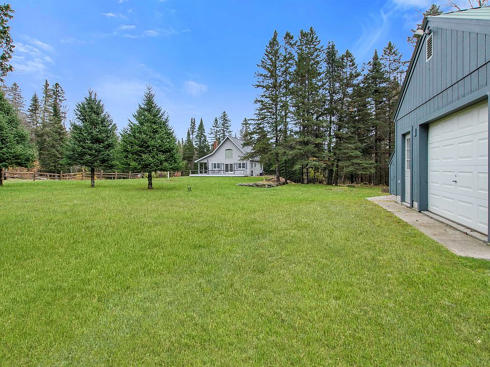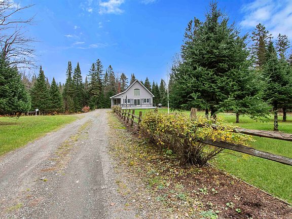 Here is a high quality home that has been lovingly and meticulously maintained. Set back on 7.67 acres this chalet style house offers privacy and one level living with a loft. Featuring open living space in the kitchen/dining/living area with a cathedral ceiling primary bedroom on first floor plus a large sleeping loft and glass sliding doors letting in the sun. The sliders lead to a 12x36 front deck overlooking the level lawns and gardens. Many extras include central vac, whirlpool tub and shower in the large bathroom, spacious laundry, closets galore, pellet stove, tiled mud room entry, automatic whole home generator, and full basement with an smaller garage door. The detached garage will hold one vehicle and has a good sized workbench area, and an attached storage for the mower or ATV. Access both ATV and snowmobile trails from this very desirable location.