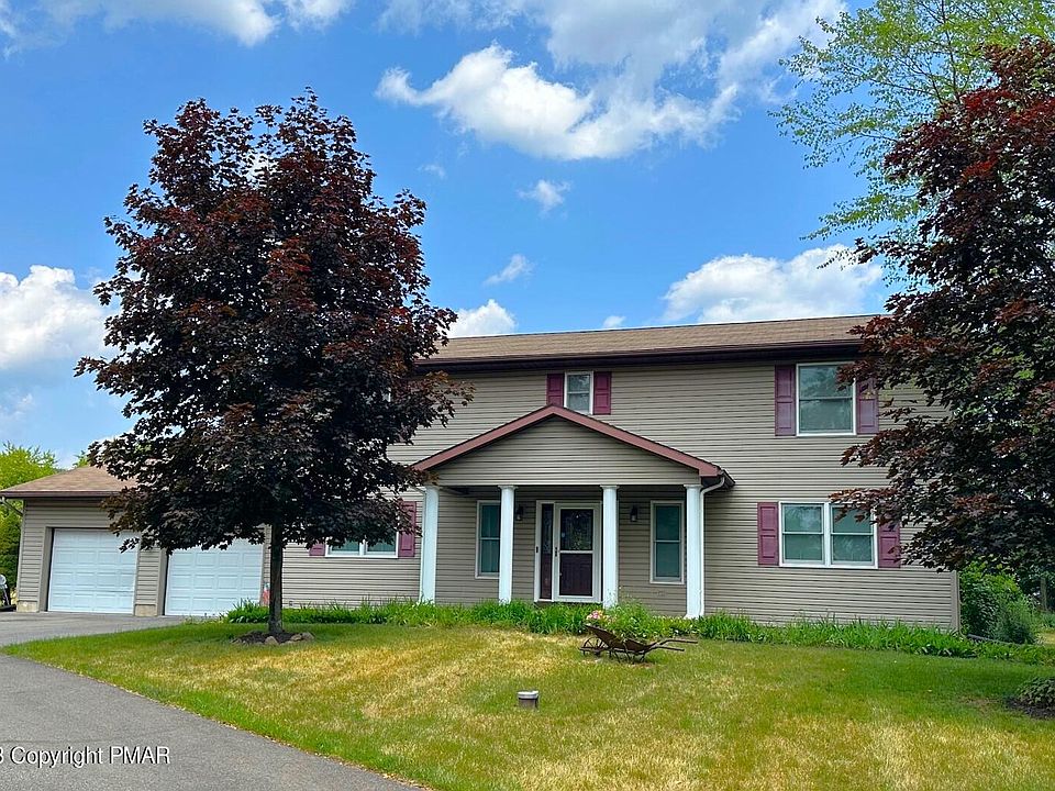 176 Switzgabel Drive in Brodheadsville, Pennsylvania presents you with the opportunity to own a 4 bedroom 2.5 bath Colonial residence for under $400,000! This well cared for home is privately tucked off the road and is perfectly positioned in the Pleasant Valley School District, on 1.39 ACRES! The long-paved driveway sets the tone as our tour starts with the 2-car parking pad, 2 car garage with workshop area and the large, flat, and usable backyard. The main level of the interior of the home houses the formal family (access to rear deck), living, and dining rooms, eat-in kitchen with desk nook & multiple pantry closets, and half bath. The lower level is mostly finished with the grand great room, and the unfinished area allows for ample storage in the utility/laundry room. The upper level offers the primary suite with bath and large closet with a window, 3 additional bedrooms and main bath for this level. Some of the other highlights are the tile, wood, wood laminate, molding accents, and security system! All of this is walking distance to the middle and high schools! You are also moments to Route 115, 33, 715 and most Pocono Mountains destination points!