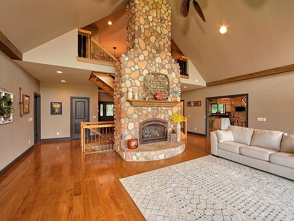 STUNNING Home with upgrades all throughout. 4 bedrooms 4.5 baths, large family room with soaring ceilings and stone fireplace, spacious kitchen fully equipped with walk in pantry and a generous-sized laundry room. High impact windows are located throughout the interior of the the home to take advantage of the the natural sunlight. An amazing Master Suite is located on the main level with an entrance to the adjoining covered porch. Master Bath has jetted tub, double vanity sinks and tiled walk in shower. The lower level of home provides a separate den with stone fireplace, a huge home office, exercise room with attached full bath, plus 2nd laundry room. A 2-car garage and a dumbwaiter is located in the lower level for easy management of groceries, etc.Delightful 30x16 in ground swimming pool provides loads of entertaining