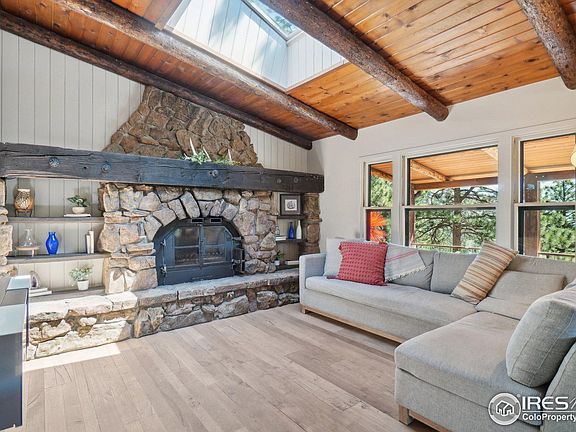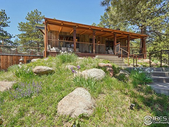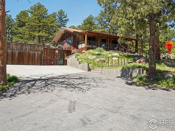 Quintessential Mountain House with phenomenal views close to all the conveniences of city living in Boulder. This Pine Brook Hills 3 bedroom, 2 bathroom, an office and oversized attached 2 car garage home has it all! The charming front porch greets guests and encourages leisure and relaxing while taking in the stunning view. Bright pops of colorful sculptures add delight as one moves through the house and grounds. Thoughtful design updates make this home aesthetically pleasing and easy to live and enjoy life. Modern wood cabin with front porch and metal roof lend to its Western charm. Entertain on the large deck overlooking the surrounding hills and valley. Mini-split AC, Aga gas range, Liberherr fridge, Fisher Paykel drawer dishwasher, new septic system, clawfoot tub. South facing driveway. Cozy home 5 minutes to Broadway and less than 10 minutes to Lucky's Market, Ideal Market, Safeway, North Boulder Rec Ctr, Pearl St Mall and more.