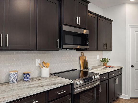 Welcome to The Grace A, where elegance meets functionality in Wellers Knoll. This stunning 3-bedroom, 2.5-bath home features a bright living room adorned with additional windows, perfect to let in natural light. The kitchen is a chef's dream with ''Fantasy Brown'' marble counters, a cook's island, and beautiful dark cabinets with dual trash pull out. Enjoy meals in the breakfast nook or step out onto the expansive deck that backs up to serene trees on a .64-acre corner homesite. The primary suite offers two walk-in closets, an oversized tiled shower and dual vanities. Additional highlights include LED lighting throughout, EVP flooring in the living room, and a 50 AMP outlet in the 2-car garage.