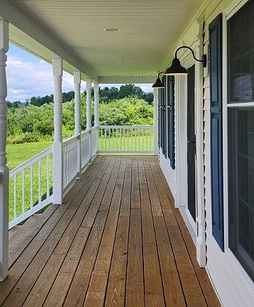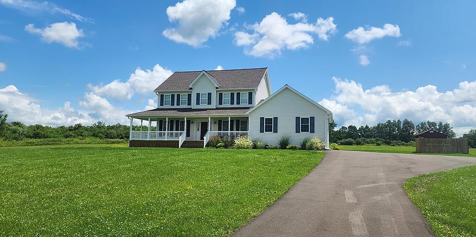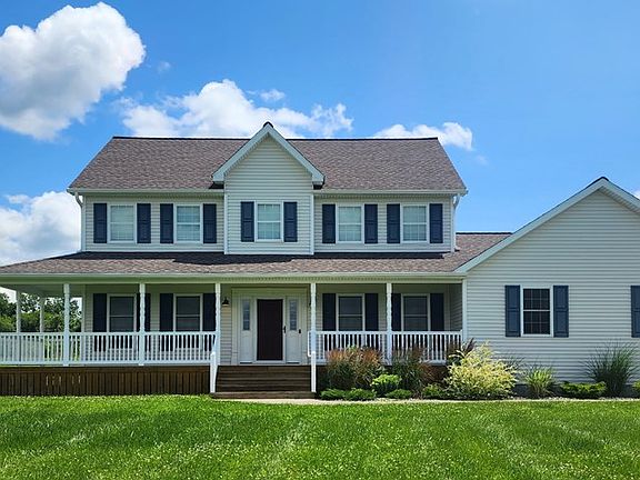 Fresh country air and beautiful views! Built in 2015, this Colonial 2 story house has 4 bedrooms & 2.5 baths. Brand new luxury flooring throughout. New stainless steel appliances, granite counters, updated cabinets, breakfast bar, & wine cooler in the kitchen. Newer fixtures. Updated baths. Master bedroom w/bath & walk-in closet. 1st-floor office or use as a bedroom. Sealed blacktop driveway in 2022. Superior concrete foundation. Recessed window in the basement. Attached 2 car garage, barn in the back, & shed. Central air. Fantastic front porch & an oversized deck in the back-Trex. 5 acres.