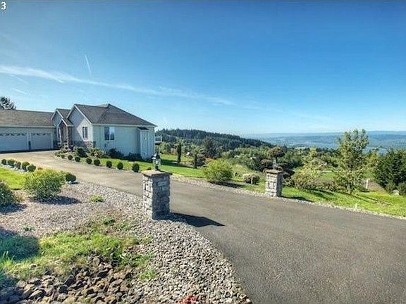 Spectacular Columbia River, Oregon Coast Range View! Vaulted Great Room w/hardwood floor, master suite w/2 sided fireplace, office/bdrm & full bath, formal dining, gourmet kitchen w/granite & nook all on the main. Downstairs you will find: 9 ft ceilings, huge rec-rm, wetbar, dining rm, 2 bedrooms, full bath. Large deck and patio to entertain. Appears to be a site for a shop !