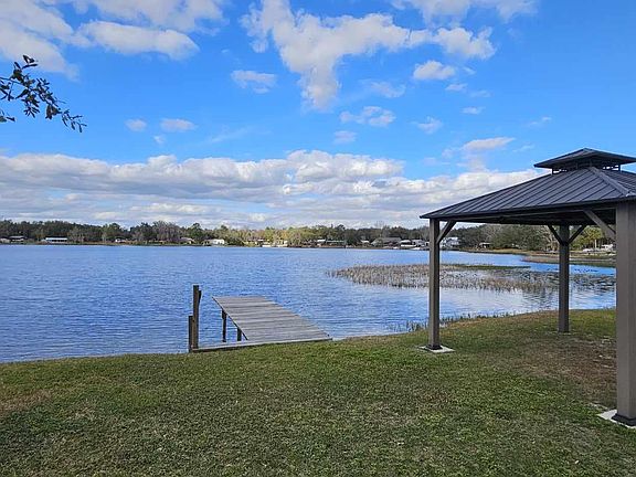 Beautifully kept, one owner home overlooking Lake Violet. Split bedroom pattern, kitchen overlooks the dining area that has spectacular views of the lake out of the back windows, wood burning fireplace overlooks the living room area. Gazebo to sit under out by the dock that goes into the lake. 1 car garage with extra storage and laundry hook-ups inside. Newer metal roofing, newer a/c, upgraded windows.