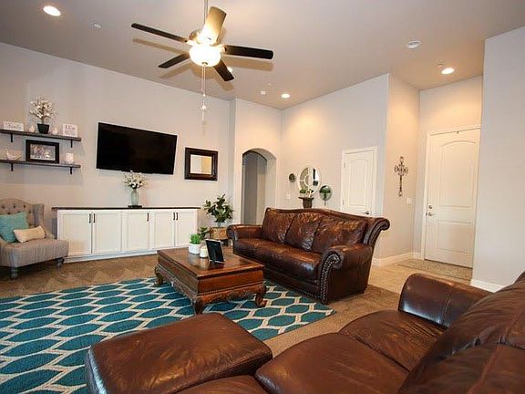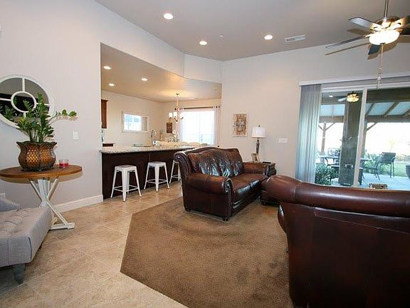 This incredible open floor plan with 9 ft ceilings plus 11 ft ceiling in living area screams buy me!, Added recessed lighting, hand textured walls, 2 tone interior paint plus wide baseboards give it the wow factor. This 3 bed 2 bath includes Granite counters & 18 inch ceramic glazed floors in kitchen, baths and laundry. Tile floors expand into hallway & entry as well. When built, this home included the kitchen upgrade package with stainless steel appliances & brushed nickel plumbing. The home is Energy Efficient with white frame dual-pane windows and tankless water heater. The backyard has an extended covered patio plus a uncovered patio as well. See for yourself, it is a great place to call home.