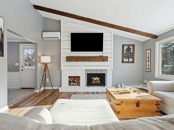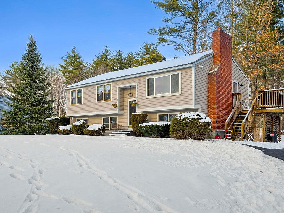 Imagine a charming home nestled deep within a lush, green expanse in East Derry! As you step inside, you are greeted by a RENOVATED open-concept living space adorned with luxury vinyl floors throughout and large windows let in ample natural light, making the interior feel open and connected to nature. Brand new driveway, electrical panel, pellet stove, gorgeous new baths, smart appliances, and fresh neutral paint. The primary suite has a walk-in closet and an en-suite bathroom. Additional bedrooms are well-appointed, offering plenty of room for family members or guests.The finished basement provides extra living space that can be used a bedroom and /or as an office, gym, playroom. It's move-in ready and waiting for its new owners to create their beautiful memories. Delayed showings until 2/1 and 2/2 at the Open Houses this Saturday and Sunday 12-2. Don't miss out!