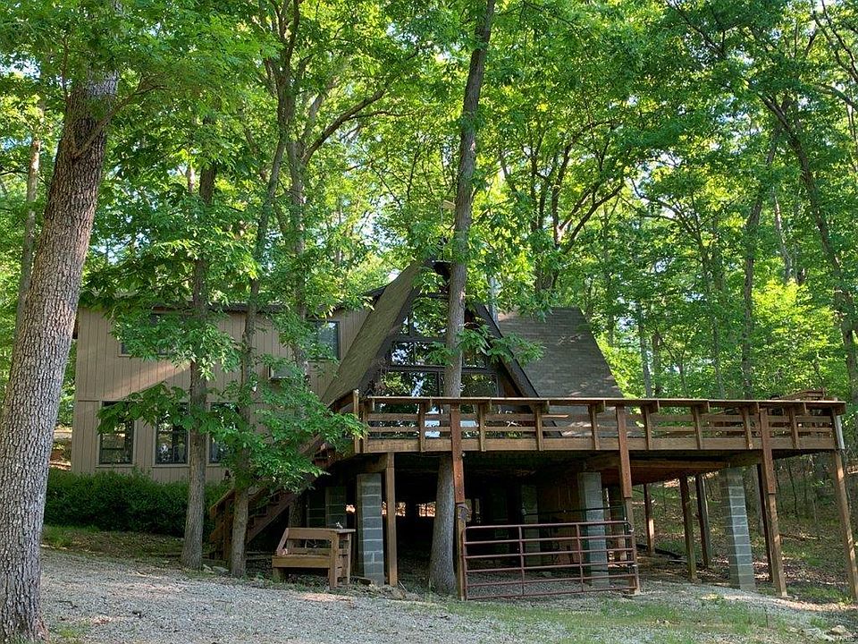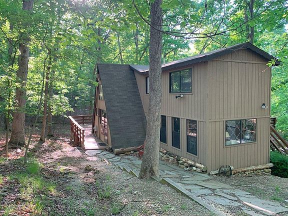 GREAT NEW PRICE! 3 BEDROOM, 2 BATH 1600 sq ft LAKE FRONT FULLY FURNISHED CHALET on a gently sloping lot to the water's edge and private dock. No steep stairs to climb! Updates and features include a walnut staircase, new LVP flooring, beautiful ship lap on the interior walls, coffee/dry bar with granite countertop. Upstairs has an open foyer with a full bath, linen closet, sleeping loft and two bedrooms. In addition there is newer landscaping, a flagstone walkway, fire pit and a gravel pathway to the lake and spray foam insulation underneath the home. Storage shed underneath the chalet is handy for all your water toys. Easy parking w/ 2 circle drives are a huge plus. Plenty of room to entertain family/guests in the spacious dining area or on the large back deck with bar overlooking the firepit and lake. Close to horse stables, pickle ball courts and Corlina Beach on Lake Innsbrook.
