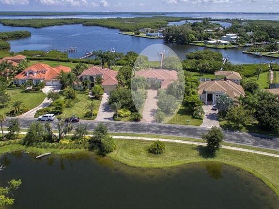 This John Cannon home built in 2006 located on scenic Snead Island. A beautiful area to relax and get away from it all. One of the best features of this home is you can enjoy a beautiful lake view from the front as well as an amazing BIG water view from the back of the home. This 4/3 is breath taking the minute you walk in. From the foyer straight to the great room; both with 14' ceilings, you will feel the space. Aquarium windows and a full wall pocket slider. Invite the entire family over or entertain friends with ease. Your Grand room leads directly to your screened, multi tier lanai with salt water pool and waterfall feature. The back yard leads to a beautiful 200ft. Trey decking dock complete with wrapped and capped pilings with a 10,000 lb boat lift ready for your sea vessel for sunset cruises and the local sea life. Your kitchen is open, large and decked with black granite, GE profile appliances and cabinets to fit it all, as a walk in pantry. With separate Dinning for formal occasions. Your master bedroom has a view of your back yard and gorgeous pool area, double walk in closets, garden bath tub and separate shower. Interior features: central vac, tile on the diagonal, impact glass windows. This half acre lot is filled with beautiful, mature landscaping and also has a 4 zone sprinkler system on a well. You will feel away from it all and so close. Emerson Point, Bradenton Yacht Club, The River Walk of Bradenton and just a 30 minute ride to Anna Maria Island. 15 minutes by boat!