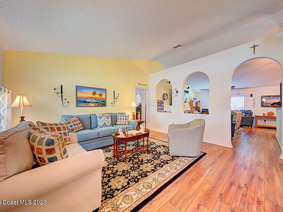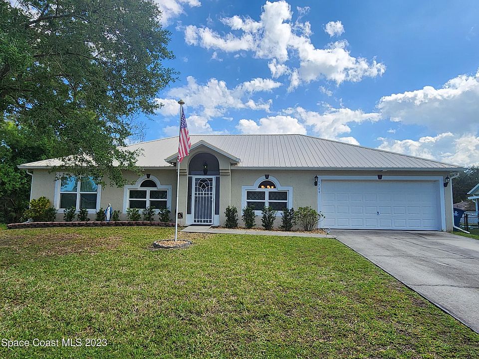 This Immaculate Move In Ready, 4 Bedroom, 2 Bath, 2 Car Garage, Concrete Block Home has much to offer including a NEW METAL ROOF (2023), New Solar Panels, New Hurricane Double-Pane Impact Windows, 12X28 Enclosed Porch, and Fully Fenced in Backyard installed before closing. Inside you will find vaulted ceilings, formal living/dining room combo in addition to an oversized family room. Off the family room is the spacious island kitchen and casual dining space that flow effortlessly together. There you will find granite countertops, stainless steel appliances, and custom cabinetry. This almost quarter acre lot has plenty of space to park your toys and is centrally located in North West Palm Bay with a short drive to the beach & I-95.
