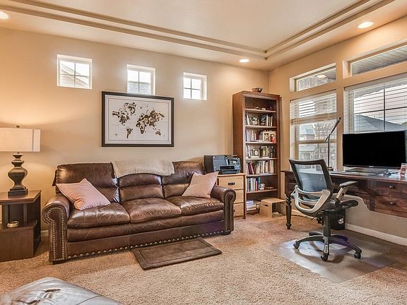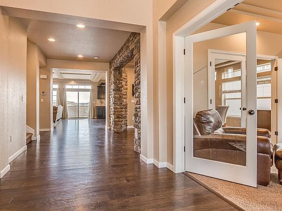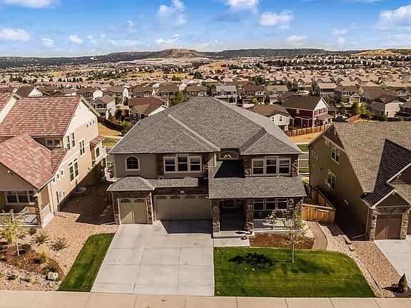 Views of Castle Rock and The Meadows, From Back Deck. Near New, Features Expansive Kitchen Granite Island, Large Pantry, Stainless Steel Appliances, Open to Family Room. Master Features His and Hers Vanities and Dual Shower Heads. Multiple Upgrades: Family Fireplace, Brick Wall at Dining Room and Fireplace, 2 Sets of French Doors at Study, Expanded Engineered Wood Flooring on Main Level, Granite Counters in Master Bath, Pre-wired for Ceiling Fans, Metal Balusters and Open Staircase, Fenced, Surround Sound 6.1 and 7.1, Sink / Cabinets in Laundry Room, Walkout Basement - Ready To Finish. Wet Bar Rough-in Bonus Room, Under-Mount Sinks, Tile Bath Surrounds, Air Purifier and Humidifier, 2 ACs and Furnaces, Conduit for Media Wiring at Fireplace, Gas Hookup on Deck, Corian 2nd Baths. Walk to Elementary School and Community Pool, Close to Bison Park,Close to Ridgeline and New Philip S. Miller Park.
