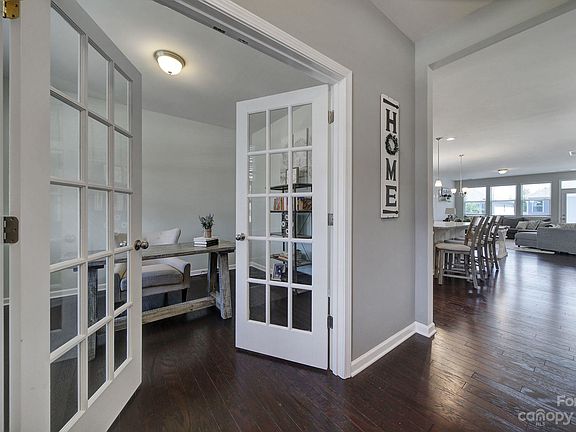 Charming ranch located in desirable Kings Grove Manor. This popular split bedroom floorplan also features a private home office/flex room with beautiful glass French doors. This open concept living space showcases the well-designed kitchen with granite counters, stainless steel appliances, gas range, tile backsplash, pantry, and center island with a built-in breakfast counter. The kitchen flows perfectly into the dining and living room, ideal for entertaining a crowd.