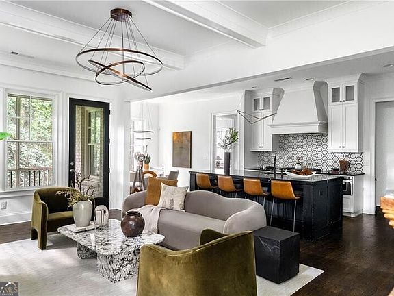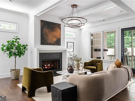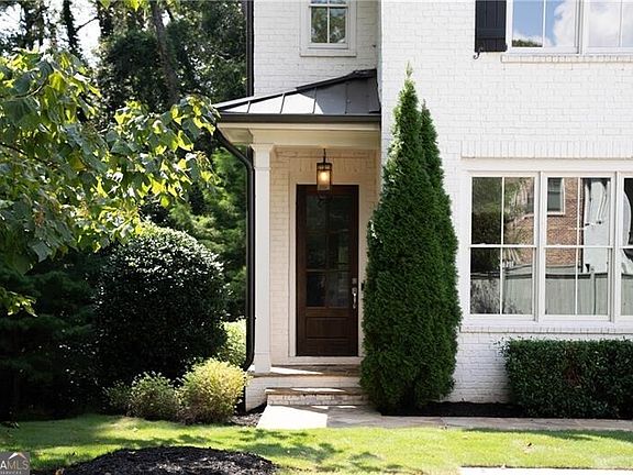 Within an intimate enclave of only 12 homes crafted by award-winning builder Jim Chapman, this painted all-brick residence distinguishes itself with a fully finished terrace level and the rare luxury of dual primary suites-one on the main level and another upstairs. Thoughtfully designed for both everyday living and sophisticated entertaining, the home blends timeless architecture with modern refinement, all within the coveted Morris Brandon Elementary School district. A gracious covered entry leads into the light-filled foyer, where dark hardwood floors contrast elegantly against crisp white walls. To one side, the formal dining room connects through a butler's pantry to the showpiece kitchen. Designed with equal emphasis on form and function, the kitchen showcases a generous island with seating, a striking combination of black and white cabinetry, dramatic black quartz countertops with bold veining, and a geometric Carrara marble backsplash. Stainless steel appliances, including a double wall oven, complete the chef's suite. A breakfast room framed by three walls of windows provides the perfect setting for casual dining. The fireside family room impresses with its beamed ceiling, refined fireplace surround, and contemporary chandelier. French doors extend the living space to a screened porch with an outdoor masonry fireplace, inviting gatherings year-round. Additional conveniences include a main-level laundry room with upper cabinetry, a powder room, and direct access to the two-car garage for effortless daily arrivals. The main-level primary suite offers a serene retreat with a sitting area, a double-tray ceiling, abundant natural light, and a spa-inspired bath featuring dual vanities, a seamless glass shower with jets, and a custom walk-in closet. Upstairs, three en suite bedrooms include one oversized suite with versatile potential. The fully finished terrace level enhances the home's livability with a family room anchored by custom built-ins that conceal a safe room, a media room, a bedroom and full bath, and a flexible space ideal for a gym or home office. A French door opens to the covered patio and walk-out fenced backyard, providing privacy and play space alike. Located just off Moores Mill Road in Homestead at Ridgewood Heights, this exceptional home offers proximity to Publix, boutique shopping, excellent schools, I-75 and I-85, and all the amenities of Buckhead. Several photos in this listing have been virtually staged.