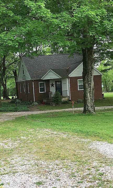 Edge of town 1 1/2 story brick home with 3 bedrooms, 2 baths, living room, dining room, kitchen, partial basement, and detached garage on 1.49 acres +/-.
