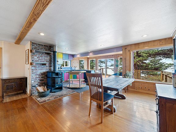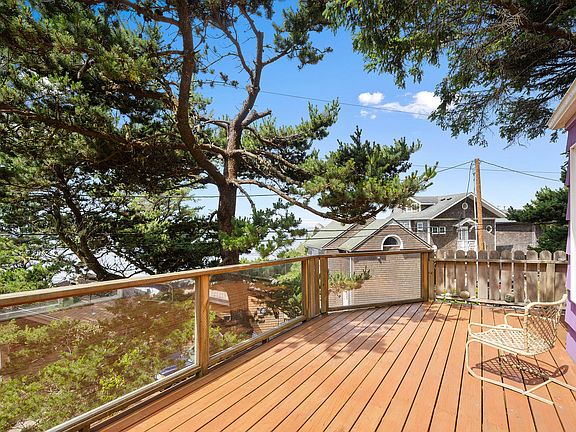 At the heart of Oceanside Village, this gem amid the trees and ocean awaits you. This incredible home features 3 bedrooms/2 baths including a complete apartment on the bottom floor with it's own private outside access and covered patio. The bountiful flowers coupled with the arched double gated entry lead you to an intriguing full lite glass entry door, then be ready to stare at the breathtaking ocean view leading you to a beckoning deck. The artsy, courageous flare of the interior design is sure to awe and inspire you along with an enchanting stair-less entrance to the master bedroom. Located on a corner lot, with coveted outside parking and a double car garage this property has all the space you will need to make this house your home.