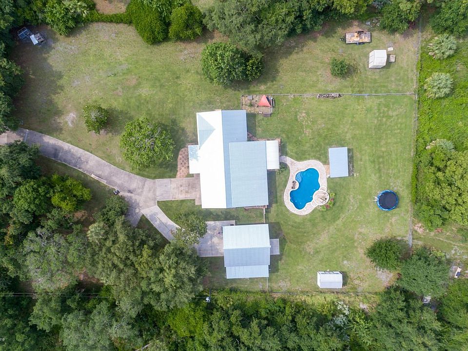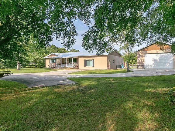 This home shows like new with all of the recent updates that have been done over the last few years including: metal roof, impact glass windows, HVAC system, flooring, lighting, kitchen, & updated baths. New salt water pool & pavilion to keep the family entertained. The kitchen is the heart of the home in this open floor plan. You will love the master bath suite with its tall ceiling and huge closet and an office/laundry nook off the master bedroom. Space for everyone with a formal living room and large family room featuring barn doors. 4 car garage with double roll up doors & 12 Ft ceilings gives plenty of space for all your toys and a pole barn off of the garage, bring your horse! This property is fully fenced with a double gate. Chicken coop & 2 sheds convey. Don't miss this one!