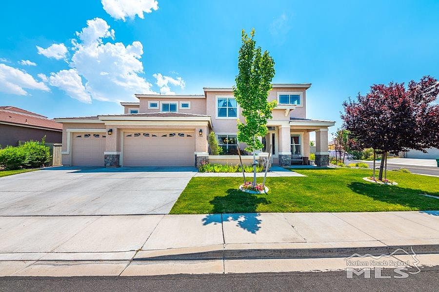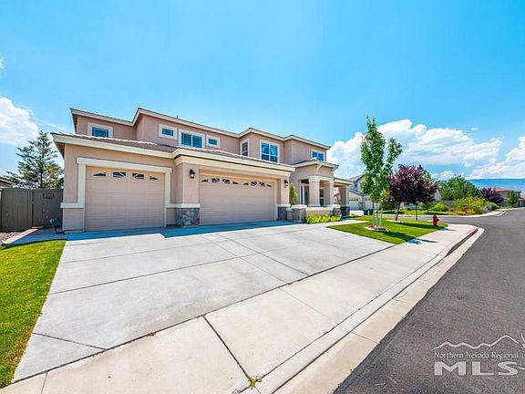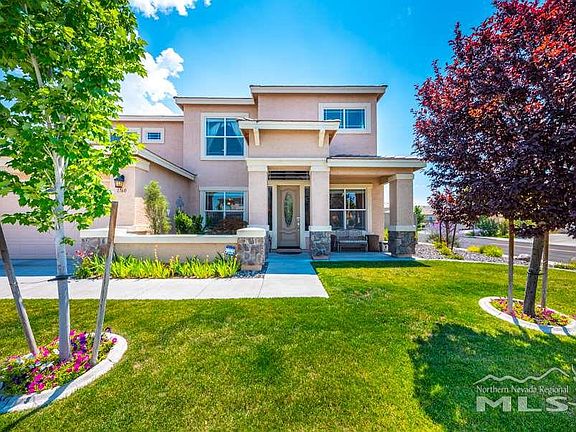 This might just be the one you have been waiting for. One of the largest floorpans in south Reno and this one is situated perfectly on a quiet street in a beautiful neighborhood that is zoned for great schools. The expansive and open floor plan accommodates a large family with ease. The kitchen is spacious with a large island and plenty of prep and storage space, complete with a heat lamp over the stove. Custom cabinetry entertainment center is built in. Spacious backyard with a dog run and matching house.