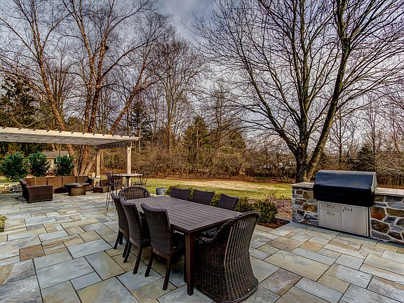 SALE PENDING. Gorgeous, completely renovated 4/5 bedroom stone colonial in Blue Bell's coveted and rarely offered Governor's Estates. This home features a spectacular 2 story southern exposure conservatory overlooking exquisite flagstone patio with built in grill and custom pergola. A circular paved driveway and flagstone walkway complete the stunning exterior. Interior highlights include a new gourmet kitchen with Craft Maid custom cabinetry, copper faucets and range hood, Wolf range and granite countertops. Recent renovations include mahogany flooring, upgraded moldings and solid core doors throughout, renovated bathrooms and an amazing 750 bottle temperature controlled wine closet. The second floor features 4 bedrooms with the 5th bedroom converted to a luxurious master sitting room. Spacious guest suite with private bath accessible by a back staircase. The finished basement includes wainscoting, drywall ceiling and custom bar.