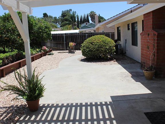 Spacious 2000 Sq. Ft. 3 bedrooms, 2 bath + bonus room (exercise room, office, nursery open to the master bedroom). Large living room/dining room area plus family room -- two fireplaces, kitchen has a breakfast bar and eat-in area with slider to large patio area--private yard area with lots of fruit trees and lush palms and ground cover. Private laundry room with access to the 3-car attached garage. 3rd bedroom has double door entry off living room--great for office or game room, etc. 3 car garage with lots of storage cabinets. Central heating and AC. Home sits on a quiet street with easy care landscaping and close-in location to local shopping and easy access to the Hwy. 78 and I-15. Available around Feb. 14th. One-year lease, security deposit same as rent, Tenant pays utilities and yard care. Pet on approval. non-smokers only.