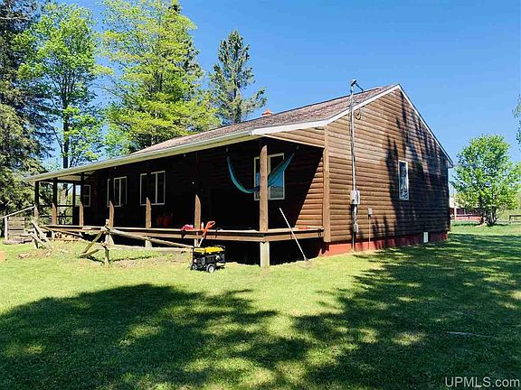 Looking for a Hobby Farm Look NO Further. This two bedroom Log Home is sitting on 40 Acres in Rock, Home Features a nice front porch, a large kitchen and family room and living room are all good size. The bedrooms are spacious, one bedroom could be made into two bedrooms, Home has a full basement and an attic area that could be finished for additional living space. Outside is everything you could ask for with land it has open fields with fencing and a barn, The Barn has 5 nice stalls , hay storage area, water and power, indoor area for working out the horses in the winter, a tack room. Home also has a nice out door Sauna .