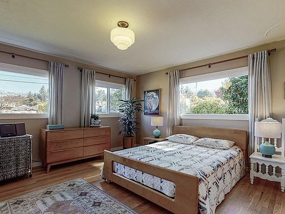 Mid century Bayside home on a quiet street for lease. 3 bedroom / 2 bath + garage and shop / studio space. Large yard with expansive bay views. Enclosed veggie garden. Central Heat, gas fireplace, gas range, W/D hookups. Lots of storage, vintage tiles and hardwood floors. Quite near Jacoby Creek Elementary. Gardener included. Utilities on tenant.