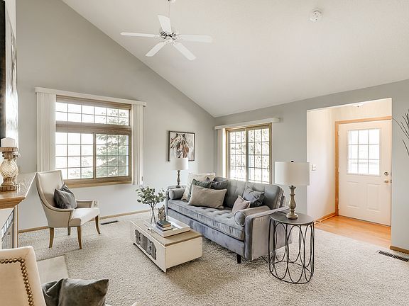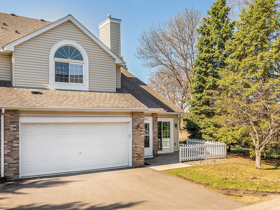 This beautiful end unit townhome located in a private location features a spacious floorplan with updates you'll love! The living room has dramatic vaulted ceilings and an eye-catching gas fireplace with marble surround greets you. On cold winter days enjoy the in-floor heat on the main floor. The two-story Informal dining area w/ breakfast bar opens to the kitchen featuring newer stainless steel appliances, convenient access to the two-car garage. Main floor laundry with newer washer/dryer and plenty of storage. Enjoy TWO master suite options! The main floor master bedroom features a walk-thru closet custom built-ins leading to a full bathroom, separate whirlpool tub, walk-in shower. Spacious loft with large storage closet and a second vaulted suite with a 3/4 private bathroom and walk-in closet. Outdoor patio with nearby trees provides plenty of shade for your summertime BBQ. Home is located close to U of M St. Paul campus, parks with walking trails, tennis courts, and Golf!