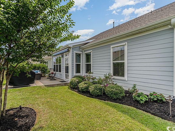 Stunning 3-bedroom, 3-bath residence with a Carolina Room situated in the highly coveted Cresswind community at Market Common. This remarkable freshly-painted home boasts plantation shutters throughout and hardwood flooring in the main living spaces.  New matching upscale granite counters have recently been installed in the kitchen and bathrooms.  Even the kitchen backsplash and fireplace surround have the same stunning granite!  Wide doorways throughout add to the bright and airy floor plan. The living room showcases an extra tall ceiling with a ceiling fan, elegant crown molding, and a cozy gas fireplace. Adjacent to the living room, the Carolina Room is illuminated by ample windows that fill the space with plenty of natural light. The kitchen boasts new and exquisite granite countertops, a matching backsplash, stainless steel appliances, a gas range, a pantry, a pass-through breakfast bar, a pendant-lit work island, a breakfast nook, and custom sliding shelves in the cabinets and the pantry.  The master suite features hardwood floors, a tray ceiling adorned with double crown molding and a ceiling fan. Additionally, the suite offers two walk-in closets and a luxurious ensuite bath. The master bath features double sinks on an elongated vanity, a water closet, and an expansive walk-in tile shower complete with a spacious bench seat. Downstairs, another well-proportioned bedroom and a second full bath with a shower/tub combination can be found. Upstairs, a generous bonus room and another full bath with a shower/tub combo offer versatile space that could serve as a third bedroom, an office, or a game room—possibilities abound in this area - and there is convenient attic storage off the bonus room closet.  The home boasts energy-efficient amenities such as natural gas heat, a tankless gas hot water heater, a heat shield radiant barrier, water filtration system, 3M tinting on the windows, and whole house surge protector. Outside, the beautifully landscaped backyard features a charming patio with a retractable awning.  Metal storm shutters equip the home. The home features a two-car extended garage with overhead storage shelving and keyless entry.  The Cresswind community is renowned for its exceptional amenities, including a 15,000 sq ft clubhouse with a fitness center, a computer center, an activities center, a yoga studio, a ballroom, and a party room. Situated on five acres, the Cresswind Clubhouse offers an amphitheater, an outdoor fireplace with a grilling area, a large resort-style swimming pool with cabanas and a hot tub, walking paths, and numerous sports courts such as pickle ball, tennis, bocce ball, and horseshoes.  Activities and clubs are endless.  The HOA covers your lawn care, irrigation, internet, and security system, along with the fabulous amenities.  Positioned within Market Common, Cresswind is only minutes away from a plethora of fantastic shopping, dining options, a bowling alley, a movie theater, and more. Notably, the residence is just 3 miles away from the beach, combining luxury living with convenient coastal access.