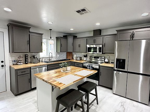 This recently remodeled home has new stainless steel appliances, new flooring, new A/C, new interior and exterior paint and much more! The interior of the home is bright and inviting, with large windows that flood the rooms with natural light. This home has 2 garages and a 20x20 shop! One attached 1-car garage and a detached 2-car garage! Home has the desirable combo of being on city sewer, but also having a well.