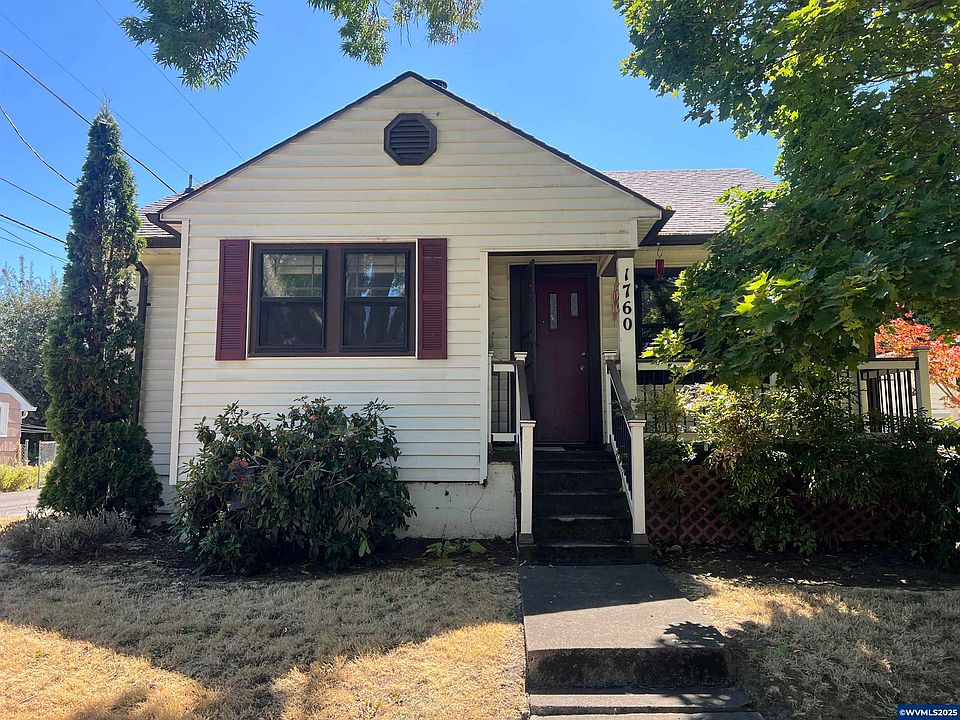 1930s bungalow in Central Salem. Tons of character with coved ceilings and arched doorways. A/C to keep cool on hot summer days. Living room, 2 bedrooms & 1 bath on main level. Family room, 2 bedrooms & 1 bath in finished daylight basement. Deck, storage shed, fenced backyard for privacy. Detached two car garage with alley access. Easy parking, close to schools and transportation. Appraised for $360,000 in July 2024. Please do not disturb tenants.