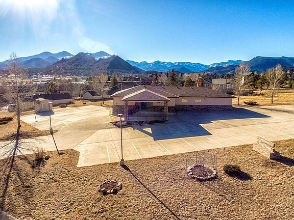 Incredible, elevated location with Panoramic views! Level .79 acre lot ZONED RM with potential for up to 12 units with Town of Estes Park affordable and workforce density incentives. Call Town of Estes for details. Currently has a 2500 sf updated Ranch Religious building with dual furnaces, covered drop off entrance, a/c and ample parking. Showings by appointment only. Buyer to verify all information.