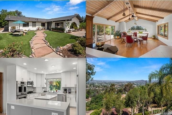 VIEWS GALORE! Top of the world living is what you will experience in this private, custom home overlooking the El Cajon Valley! This 4 bedroom, 3.5 bath, 2,542 SF 1 story gem features a newer roof, new paint, a newly remodeled kitchen with Monogram appliances, a newer Carrier HVAC system and two fireplaces. The spacious Master Bedroom features a unique his and hers bathroom. The .81 acre of land has mature fruit trees, including Pomegranate, apricot, peach, apple, lime, lemon and oranges. A huge covered patio and decking over looks the El Cajon Valley and is perfect for entertaining. The oversized three car garage has room for all your cars and toys. This is a rare opportunity to own a beautiful property in an unbelievable location.