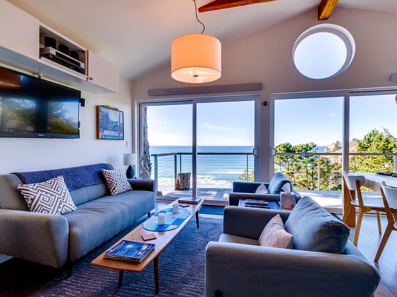 Extensively remodeled cottage located in a prized close-in location just blocks from the beach in the Village of Oceanside. Mesmerizing, up-close views of surf and sand as far as the eye can see. Check the surf or watch for whales from your living room, kitchen and bedrooms. Walk to restaurants, coffee shop, community center and beach! Finest quality throughout. Main level features open concept kitchen/living with vaulted ceilings, deck and epic ocean views. Lower level you'll find two bedrooms, each with a full bath, owner's closet, and another sun catching ocean view deck. Currently operated as a successful vacation rental. It doesn't get much better than this! This property is a real gem.