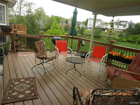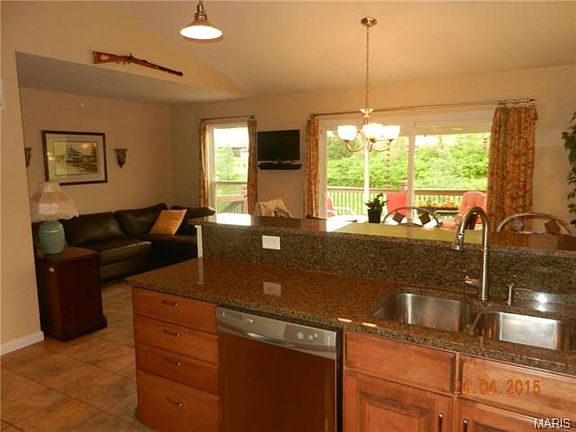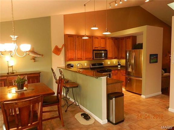 Fabulous villa minutes from 44 and 141. Welcome home to one of the most upscale units in the development. This 1400+ sq ft unit is loaded with extras. Over $18,000 in updates in last year alone..auto skylights, deck awning, poured patio, plantation blinds, counter depth LG refrigerator and much much more! The back of the unit features both a ground floor patio and immense upper deck with awning that overlooks serene common ground. Also, deck has a stairwell to the ground which is unusual for this development. Walk in to the unit with a bedroom (den) on your right then enter the large living room with gorgeous wood floors. Beyond that is kitchen with granite, high end wood cabinets and all stainless appliances. Kitchen is open to large dining/family room area. Sliding doors open you to the freshly stained deck. First floor also has the massive master ((19x12) with private bath and dual closets. Main floor laundry complete this floor. Garage is finished with extra room for storage.