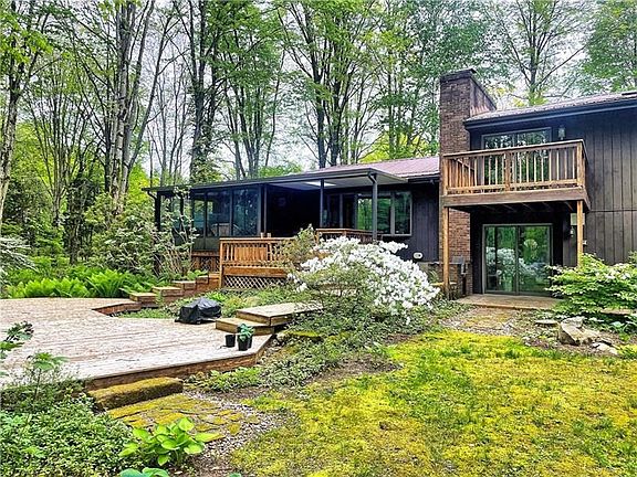 Thirty acres of wooded privacy! This three bedroom, two full bath, 2 half bath home is situated in a wooded wonderland. Beautiful mature trees offer a canopy over this unique property. The various porches and decks of this home offer ample opportunity to enjoy the outdoors for entertaining as well as enjoying wildlife. The four detached garages boast ample storage space for any hobby interests - cars, boats, off road vehicles, woodworking, etc. Convenient location to Rt. 19/I-80 interchange.