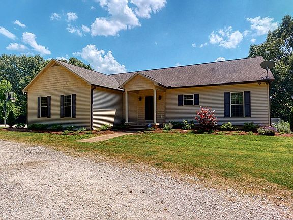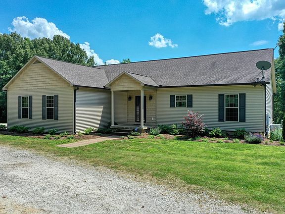 Located in quiet country setting on 25.20 acres is this custom built 4 bedroom 3 bath home. Open living, kitchen, dining area. Living area with vaulted ceiling, stone gas log fireplace and built ins provides views of the appealing back grounds. Split floor plan offers spacious master suite, 2 guest bedrooms and additional bath and large laundry room on the main level. Sit on the full length back porch and watch the children play or enjoy nature. Basement is great space for family room, game room or man cave. Acreage, a mix of open and wooded, could be home to horses or other animals. Abundant deer and turkey. This property offers so much. Additional 12.48 acres can be purchased.