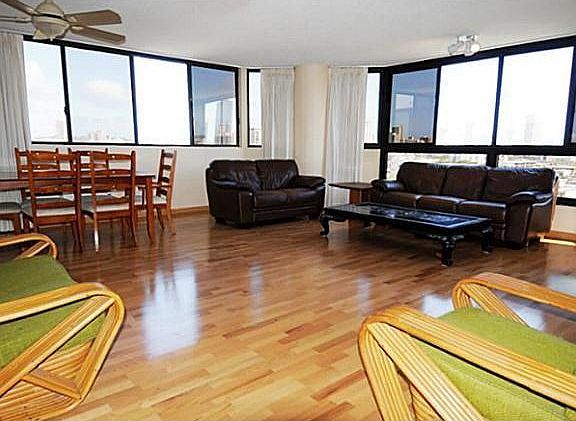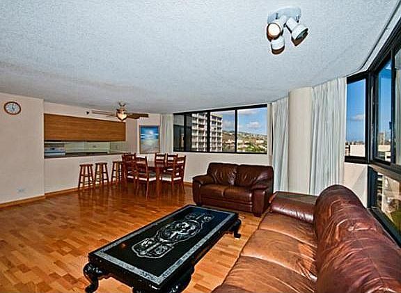 Located on the 8th floor, this unfurnished 2 bedroom 1.5 bath 2 parking located near downtown Honolulu. Laminate flooring throughout. Kitchen appliances include refrigerator, dishwasher, stove, micro. Washer dryer inside apartment. Tenant pays own cable TV and wifi and electric. Available April 1. Sorry no smoking, no pets. Tenant screening and security deposit required. One year lease minimum. Tenant pays own electrical and cable TV. Sorry no smoking, no pets. Security deposit, screening fee and renters insurance required. 2 Parking spaces included. Available April 1.
