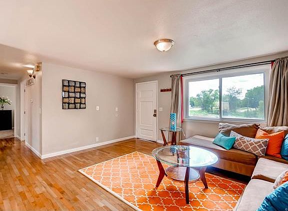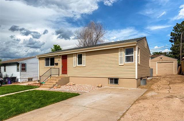 Updated ranch home across from Sanderson Gulch Open Space and walking path. Amazing yard with new grass, large concrete patio, fenced yard and dog run. New vinyl siding, newer roof, hardwood floors, tile, and new paint. Updated and expanded kitchen with new cabinets and granite tile counters. 3 Bedrooms and one full updated bathroom on the main level. The basement has a flex room and a large rec room. There is a non-conforming bedroom with a walk-in closet and updated full bathroom. Oversized one-car detached garage. Close to Garfield Lake Park.