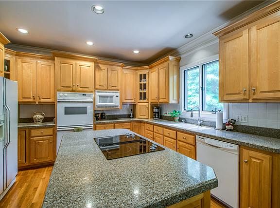 Wow what a great house! Newer roof, HVAC, hot water heater, energy efficient windows and New covered Trex deck..No big dollars to spend! 5 Bedrooms 1 down with full bath and 3 baths up. Tons of hardwoods, french shutters, stunning professional landscape