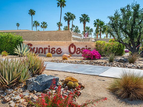 Back on the Market! Gorgeous Central Palm Springs Condo with Newer Windows, HVAC & Roof, and more!Welcome to Sunrise Oasis -- your Palm Springs escape! This beautifully renovated 3-bedroom, 2-bath end-unit condo is ideally located in the heart of central Palm Springs on fee land (you own the land!).Enter through a private gated courtyard with an Alumawood shade awning, modern entry door, and stunning mountain views. Inside, wood-look luxury vinyl flooring complements soaring wood-beamed ceilings in the spacious living and dining areas. The living room's wall of windows opens up to a patio overlooking lush green space, perfect for indoor-outdoor living.The gourmet kitchen features stainless-steel appliances, quartz countertops, recessed lighting, and on-demand hot water. The primary ensuite is a serene retreat with abundant light, generous closets, private patio access, and a recently remodeled spa-inspired bath with a walk-in shower, floating double vanity, and terrazzo tile floors. The hall bath was also recently redone and includes a soaking tub, gorgeous tile, and custom vanity.A flex room with glass French doors can serve as a guest bedroom, office, or den. At the opposite end of the home, the dedicated guest bedroom offers direct patio access for added privacy.Recent upgrades to this home include roof, HVAC system, whole-house water filtration, and upgraded electrical panel. The attached single-car garage includes laundry, with dedicated parking for two additional vehicles just outside.Sunrise Oasis is a low-density community of just 96 homes, featuring three pools, three spas, and tennis/pickleball courts, all surrounded by expansive greenbelts--just minutes from Palm Springs' best dining, shopping, and nightlife!